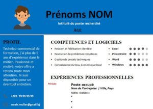 CV attrayant adapté pour toutes vos candidatures professionnelles : recherche d’emploi , de stage ou de job . Téléchargez-le . Modèle de CV téléchargeable et modifiable en version Microsoft Office Word.