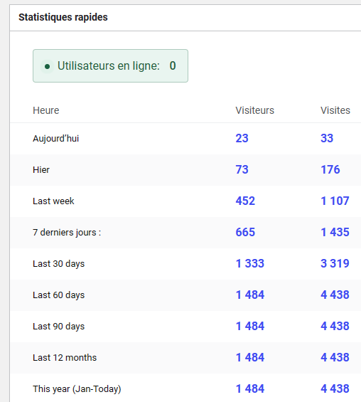 Les statistiques de votre site internet vous permettent de suivre l’évolution du trafic de votre site, analyser les tendances, et prendre des décisions éclairées pour améliorer l’expérience de vos visiteurs et augmenter votre audience en fonction des données collectées.