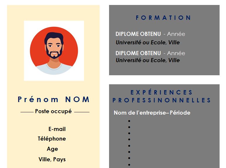 CV attrayant adapté pour toutes vos candidatures professionnelles : recherche d’emploi , de stage ou de job . Téléchargez-le . Modèle de CV téléchargeable et modifiable en version Microsoft Office Word.