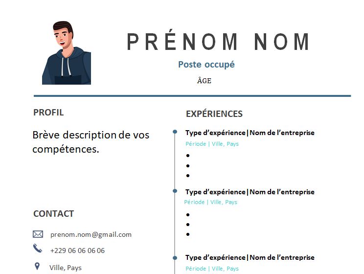 CV attrayant adapté pour toutes vos candidatures professionnelles : recherche d’emploi , de stage ou de job . Téléchargez-le . Modèle de CV téléchargeable et modifiable en version Microsoft Office Word.